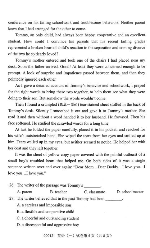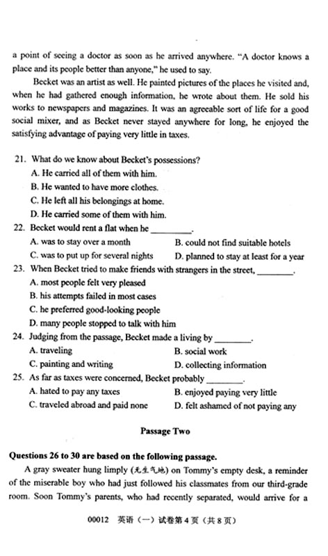 上一篇:全国2008年10月高等教育自学考试综合英语(二)试题
