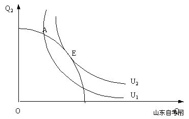 生产与交换符合帕累托最优标准的条件是产品转换率与消费者的无差异曲线的斜率相等,即