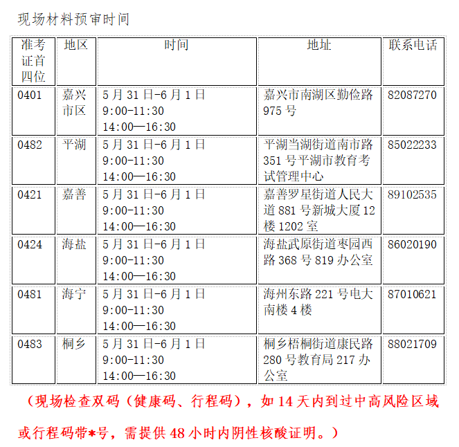 4.由于疫情原因本次现场办理考生请配合做好防控工作。(现场检查双码(健康码、行程码),如14天内到过中高风险区域或行程码带*号,需提供48小时内阴性核酸证明。)