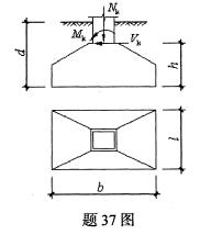 37.柱下独立基础如题37图所示.基础顶面作用的轴向压力Nk=700kN,弯矩Mk=200kN·m,剪力Vk=25kN,修正后的地基承载力特征值fa=200kN/m2,已知基础底面尺寸b=3m,l=2m,基础埋置深度d=1.5m,基础高度h=1.0m,基础及以上土的重力密度平均值γm=20kN/m3.试验算地基承载力是否满足要求.