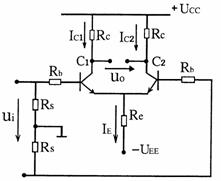 试求:(1)若已知Re电阻的电流IE=1mA,求电路中IC1、IC2、UC1、UC2、IB1、IB2;
