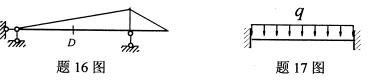 17.图示梁,EI=常数,在均布荷载q作用下,跨中竖向位移为Δ,若将EI增大为2EI,则跨中竖向位移为__________.