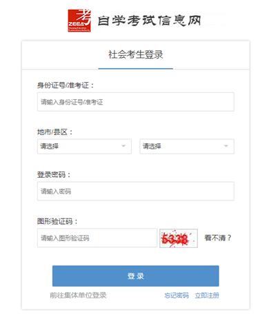 考生在“社会考生登录”界面使用身份证号或准考证号登录,登录密码为身份证号后六位。由于身份证号或密码错误无法登录:首次登录系统的考生,请与当地教育考试机构联系;原已登录过系统的考生,通过“忘记密码”功能自行重置密码。