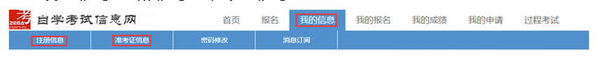 我的信息-注册信息、准考证信息