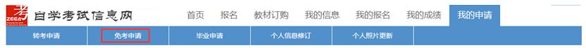 (二)考生登录浙江政务服务网(www.zjzwfw.gov.cn)或浙江省教育考试网(www.zjzs.net)或自学考试信息网(zk.zjzs.net)在线办理免考申请登记。