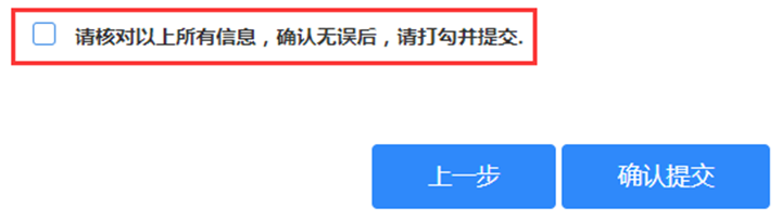 ④核对信息。所填信息核对无误后,打勾并确认提交。