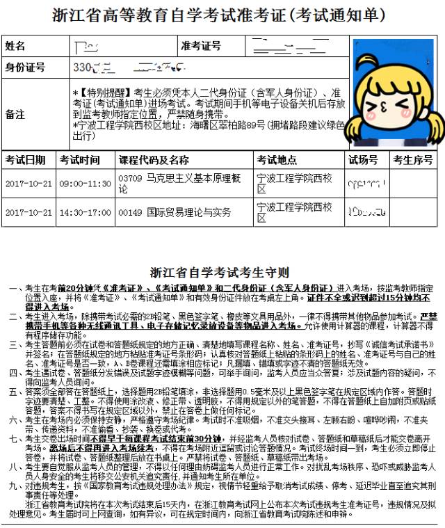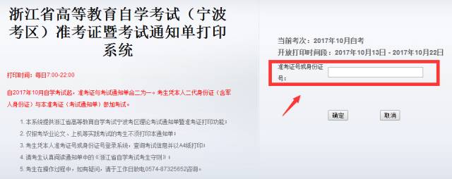 【宁波市】2017年10月自考准考证(考试通知单)打印流程