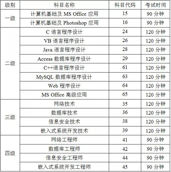 科目考试时间: 考试采取机考形式,本次开考科目及各科考试时长见下表。