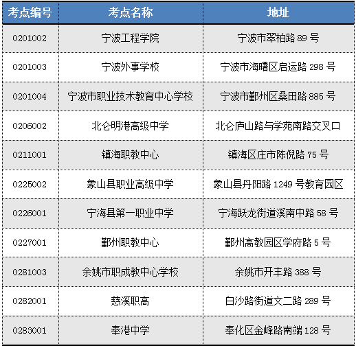市区考点设置: