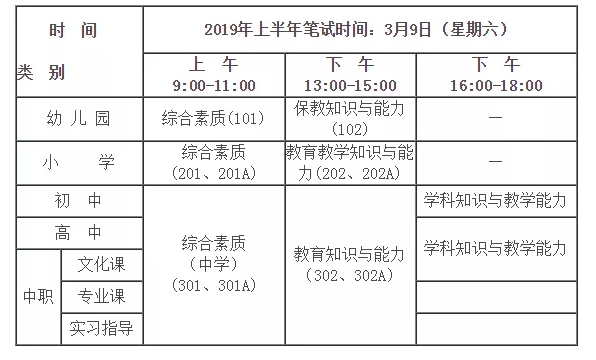 本次考试日期为2019年3月9日,各科目考试时间均为120分钟、采用纸笔考试方式。