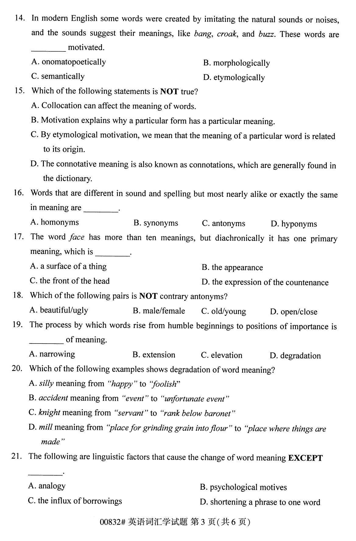 下一篇:2020年10月自考00832英语词汇学部分真题答案