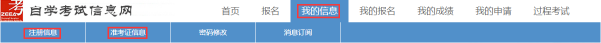 我的信息-注册信息、准考证信息;我的成绩-成绩查询