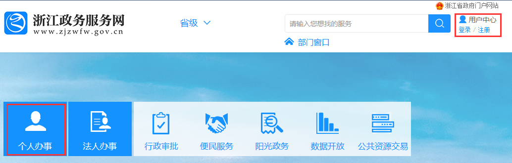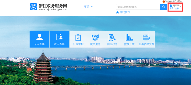 ③转至浙江政务服务网,实名注册、登录,随后按浙江政务服务网操作流程进行
