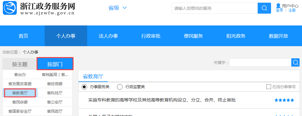 (二)考生登录浙江政务服务网(www.zjzwfw.gov.cn)或浙江省教育考试网(www.zjzs.net)或自学考试信息网(zk.zjzs.net)在线申请办理省际转考(转出)。