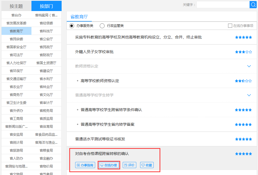 ④对自学考试合格课程跨省转移的确认-在线办理