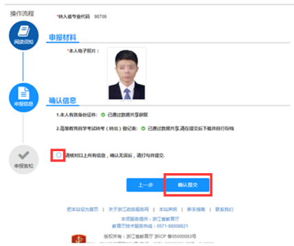 (3)核对信息。信息核对无误后,须打勾并确认提交