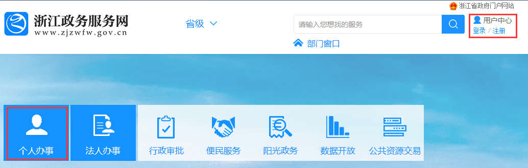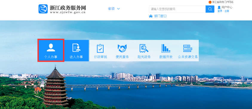 ③转至浙江政务服务网,实名注册、登录,随后按浙江政务服务网操作流程进行