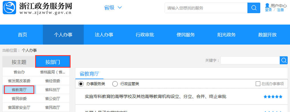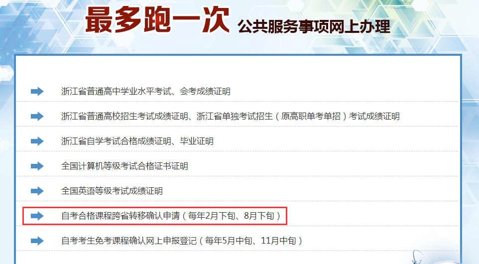 (二)考生登录浙江政务服务网(www.zjzwfw.gov.cn)或浙江省教育考试网(www.zjzs.net)或自学考试信息网(zk.zjzs.net)在线申请办理省际转考(转出)。考生也可在“浙里办”APP 上申请办理省际转考(转出)。