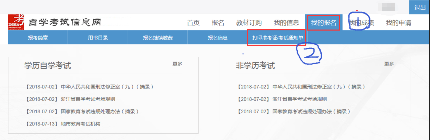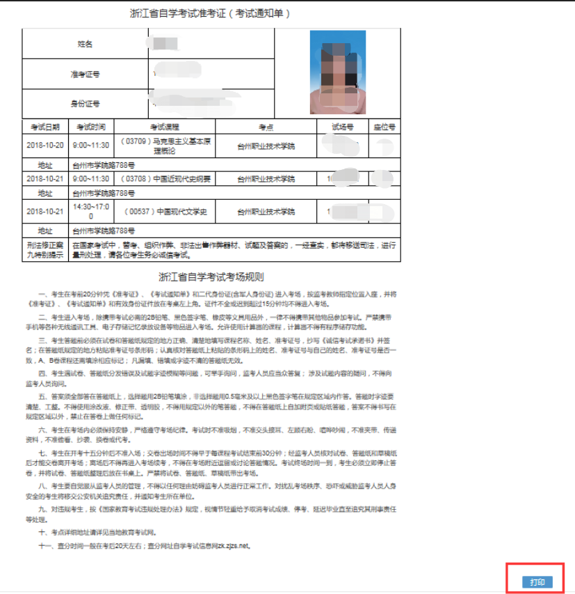 2018年10月浙江自学考试打印准考证|考试通知单流程