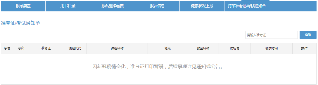 准考证打印暂缓,具体打印时间待省教育考试院通知。